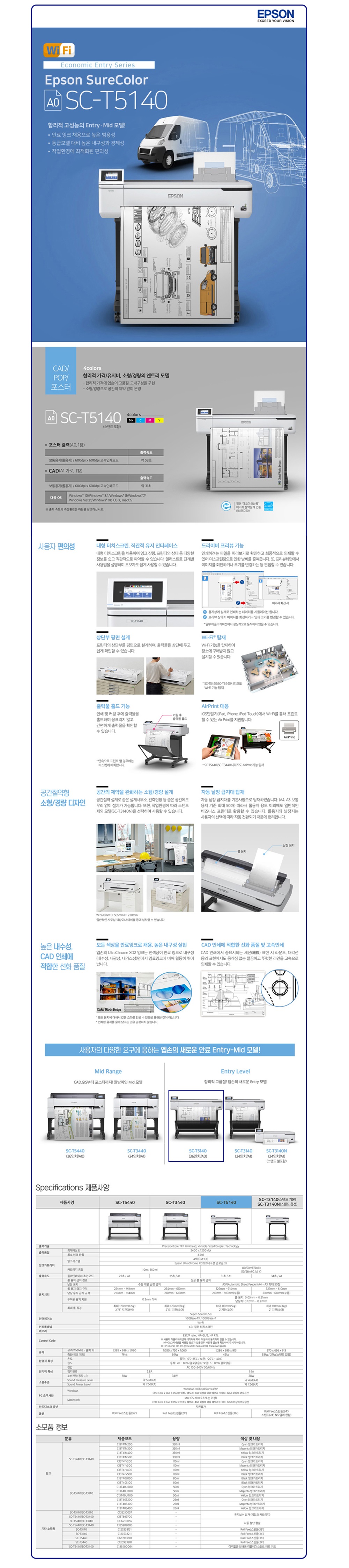 엡손플로터 SC-T5140, 36인치,914mm,4색컬러